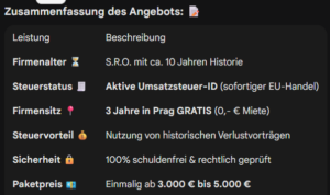 Warum sollten Sie hohe Steuern zahlen, wenn Sie Ihr Kapital direkt in das Wachstum Ihres Unternehmens reinvestieren können? Die Tschechische Republik bietet ein unternehmensfreundliches Umfeld, und mit unserer speziellen Struktur optimieren wir Ihre Belastung auf ein absolutes Minimum. 💰 Das Steuer-Wunder: 40.000 € Gewinn = Null Steuern Unser Flaggschiff-Modell ist auf maximale Effizienz ausgelegt. Wir … Pokračování textu 📉 Maximale Rendite durch tschechische Steuer-Effizienz: Das 40.000 € Modell